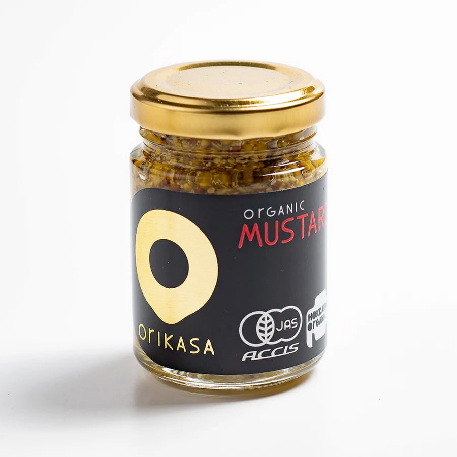 幕別町・折笠農場「ORIKASAオーガニックマスタード」の原材料はたったの3つ、自社栽培の有機マスタードシード、有機じゃがいも酢、塩(自然海塩)のみ。化学調味料・保存料不使用。お酢は、自社栽培の一般流通されていない希少なオーガニックじゃがいも「さやあかね」を3ヶ月間静置発酵させ醸造したものを使用しています。