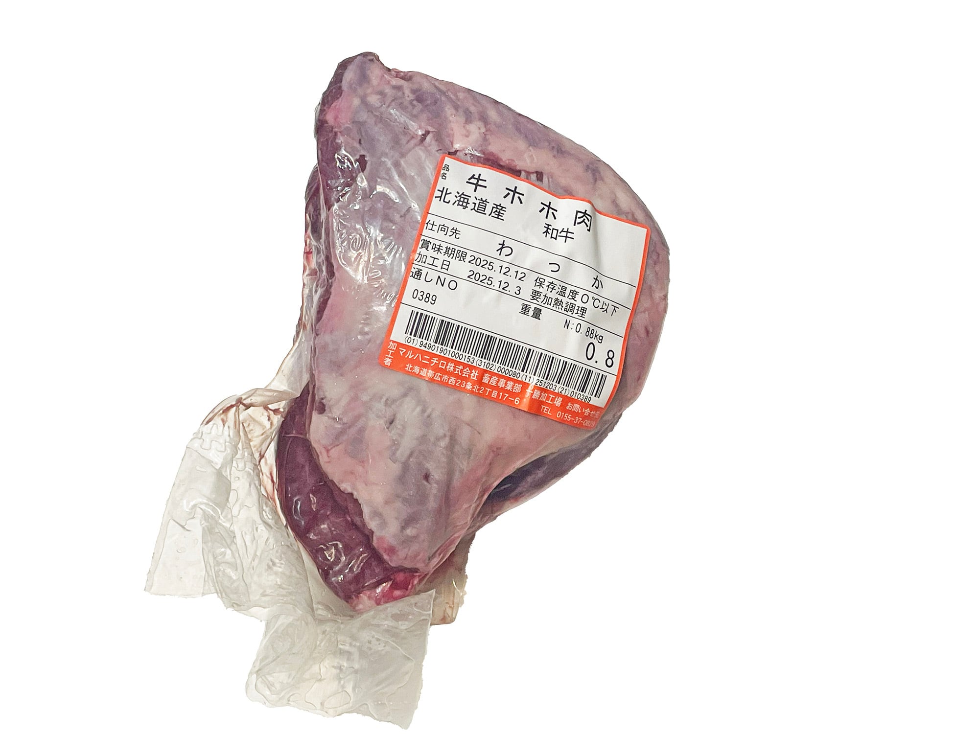 北大短角牛のホホ肉です。2個で1パックの重量です。