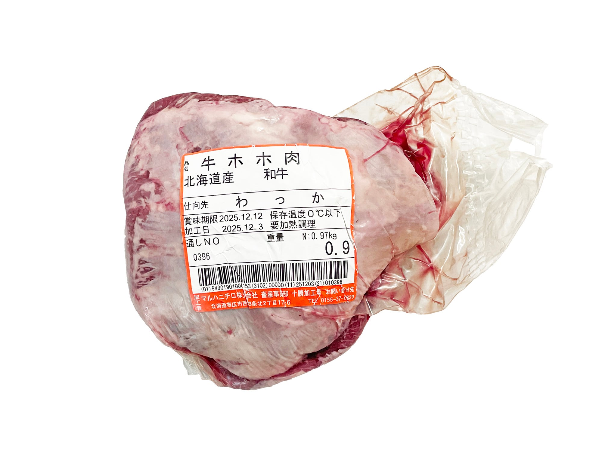 北大短角牛のホホ肉です。2個で1パックの重量です。
